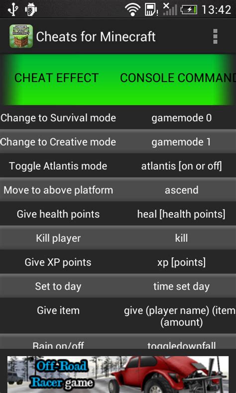 Minecraft cheats app game for android description: minecraft cheats app gives you all the minecraft cheats in one place. It contains cheat codes for pc ps3 and xbox 360. Night is spent either indoors mining underground tunnels building tools or running around outside being chased by monsters.